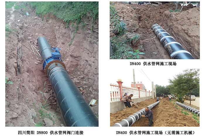 在工程施工方面,大口径星空(中国)管也占很大优势。钢丝缠绕超高星空(中国)管的比重约为1.2,而由于其壁厚很薄,直径可以小一号,其重量比铸铁管和PCCP管小5—10倍,搬运和安装非常轻便。超高星空(中国)复合管的柔韧性很好,可以先在地面上连接好之后再下到管沟里,边挖沟边下管,边填埋。不用修路,不用大型机械,不用地基处理。铸铁管和PCCP管必须挖很宽的沟,管道下到沟里对正连接,受到很大局限,工程费用大幅上涨。在需要穿越江河的情况,超高分子量聚乙烯星空(中国)管可用沉入法在江河底敷设,也可用拖拉法从江底隧道或管道中拖曳而过,这都是铸铁管和PCCP管做不到的。