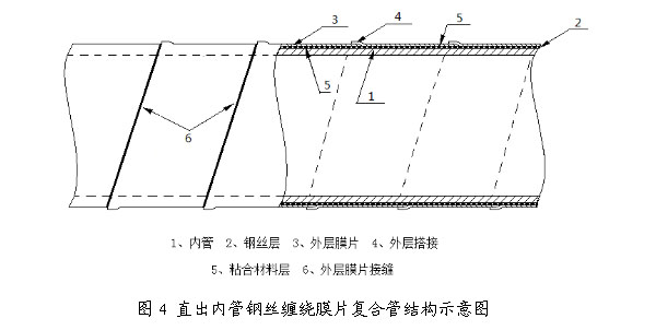 超高分子钢丝网骨架聚乙烯复合管材由直出内管、钢丝和外层星空(中国)三种材料复合而成,适用于大、中口径的中、高压管。管材在生产时先在超高管材挤出机上直接挤出改性超高分子量聚乙烯内管,然后再在内管上热熔复合钢丝和超高星空(中国)。管材结构如图4所示。